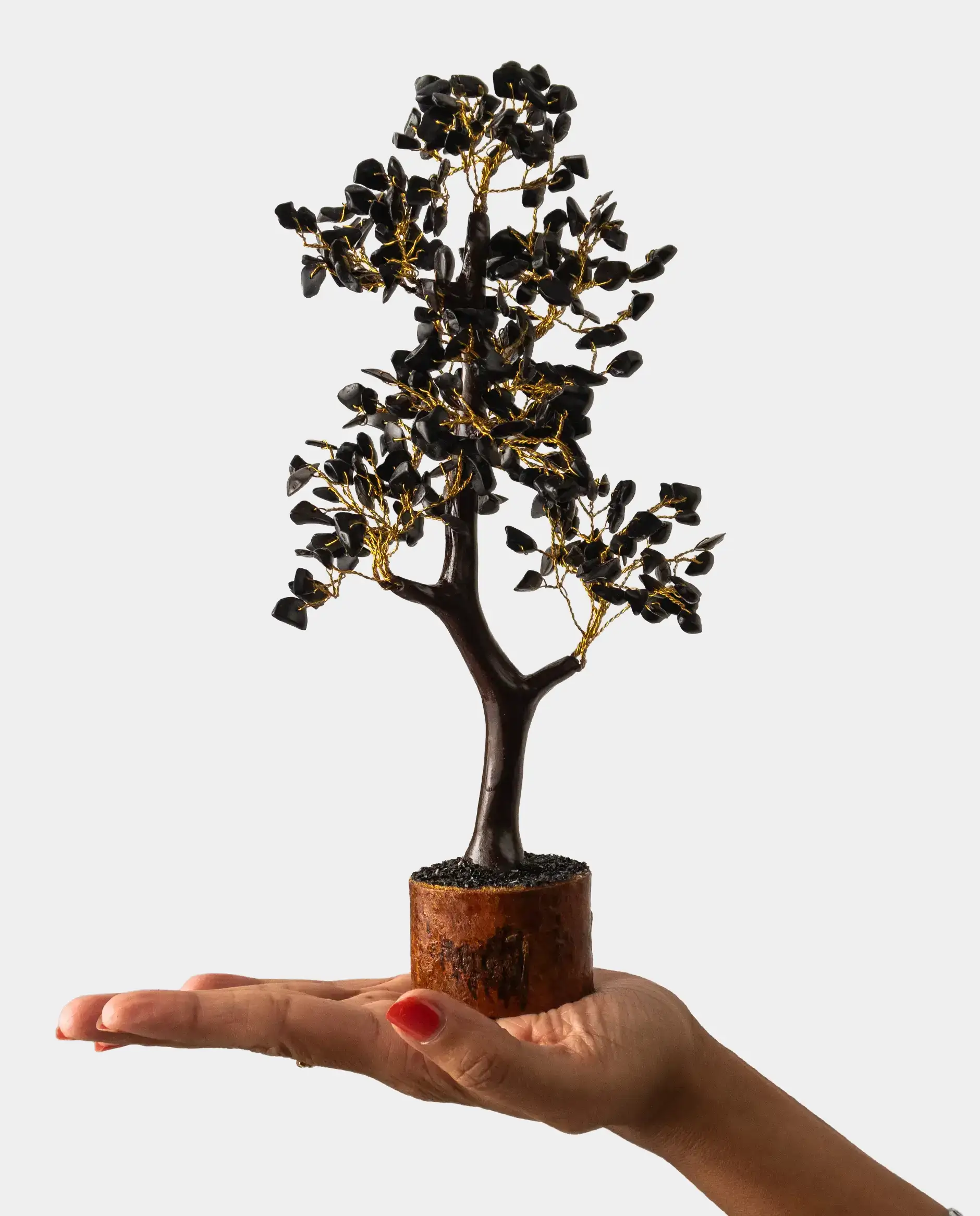The Black Tourmaline Gemstone Tree of life, prosperity edition, a handcrafted masterpiece designed to bring grounding energy, protection, and abundance into your space. Each tree is meticulously crafted with natural black tourmaline crystal chips, known for their powerful protective properties. The tree’s intricate wire design and sturdy base symbolize strength and stability, making it a perfect addition to any home or office.