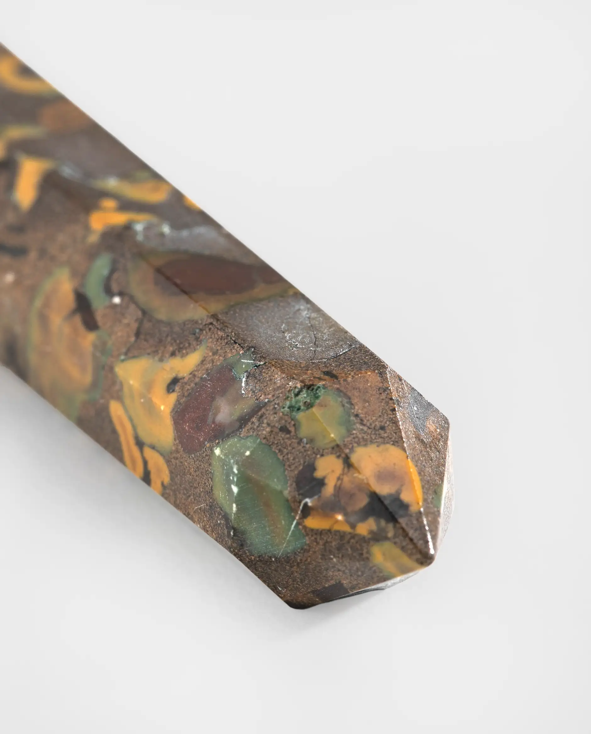 Fruit Jasper Healing Crystal Wand perfect for manifestation, reiki, and spiritual connection. Ideal for home decor, energy work, and gifting.