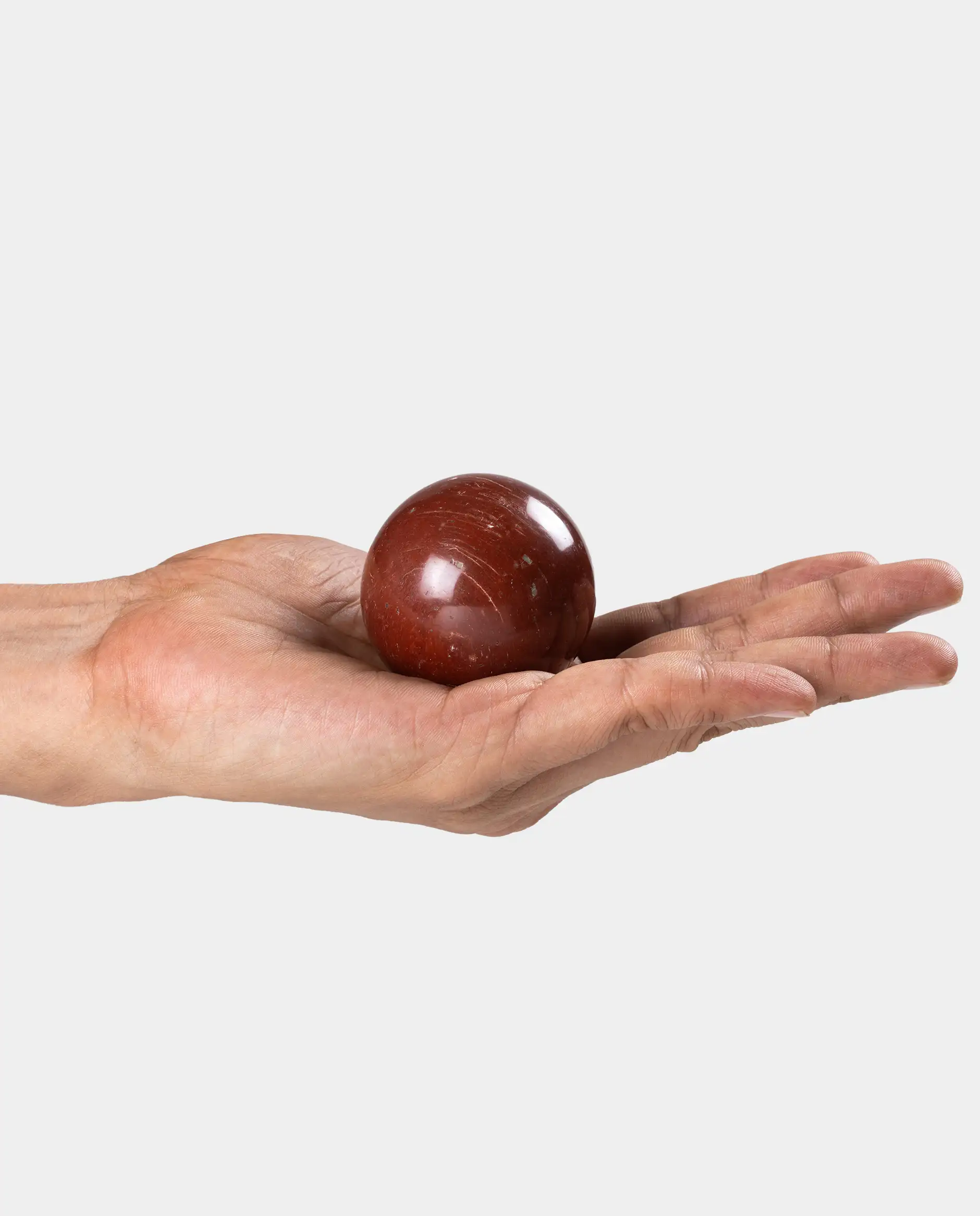 • Hand-polished 100% natural Red Jasper in spherical form.