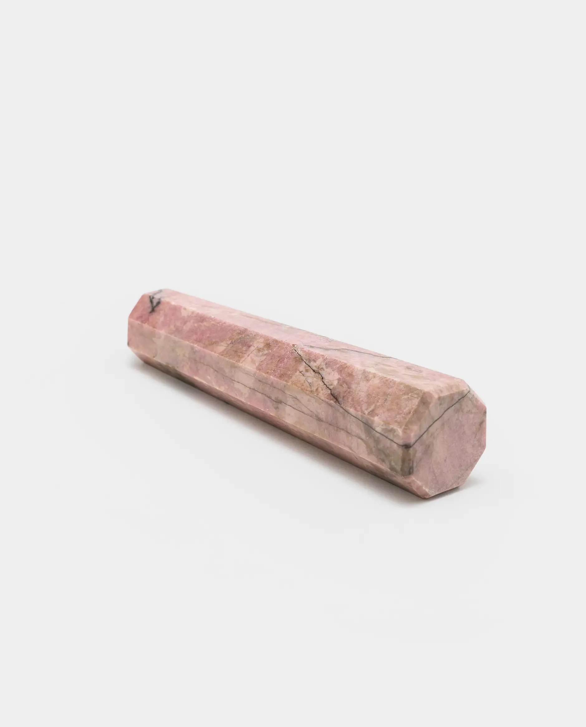You can cleanse your Rhodonite wand by rinsing it under cool, running water, smudging it with sage or Palo Santo, or placing it under the moonlight overnight.