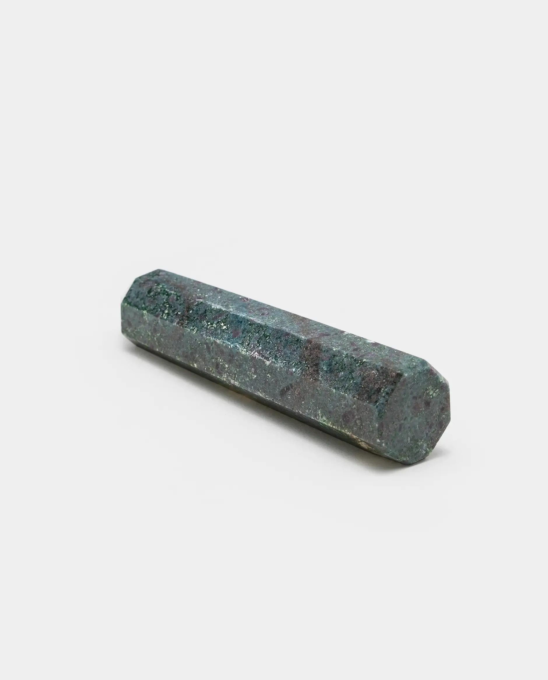 The Ruby Zoisite Healing Crystal Wand, also known as Anyolite, is a striking gemstone that combines the passionate energy of ruby with the grounding properties of zoisite. This vibrant crystal features a blend of deep green zoisite interspersed with vivid ruby inclusions, creating a visually captivating piece. Revered for its ability to stimulate the heart chakra, this wand is ideal for those seeking emotional healing, personal growth, and spiritual awakening. Whether used in meditation, energy healing, or as a decorative piece, the Ruby Zoisite Wand serves as a powerful tool to enhance vitality and emotional balance.