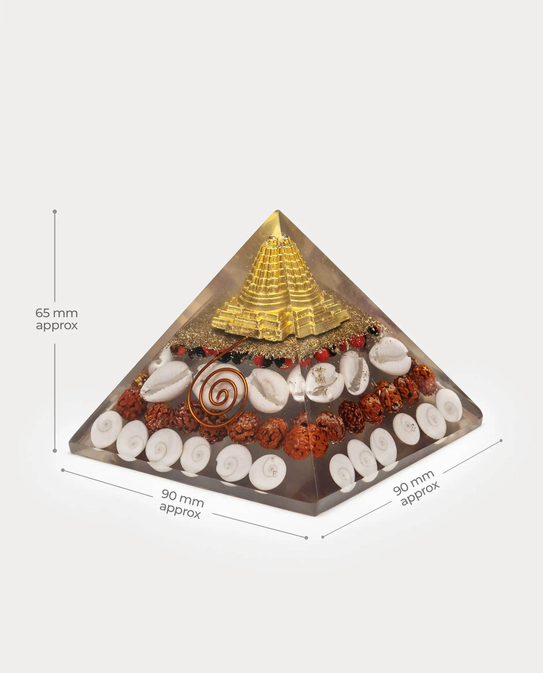 Shree Yantra 90mm Pyramid with Gomti Chakra for Vastu, Wealth, Luck & Positive Energy